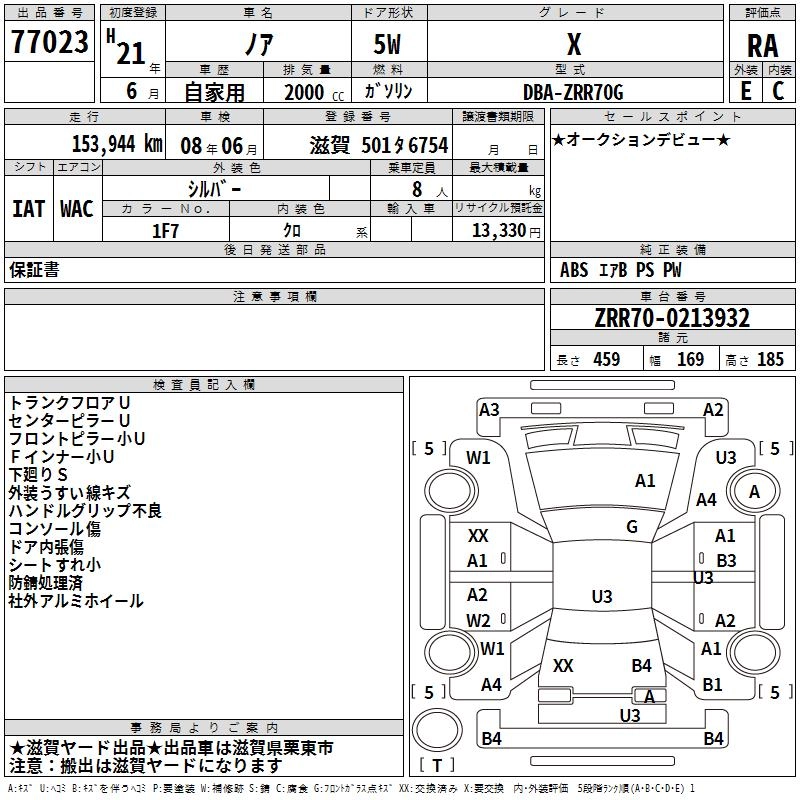 TOYOTA NOAH 2009 г., лот № 77023