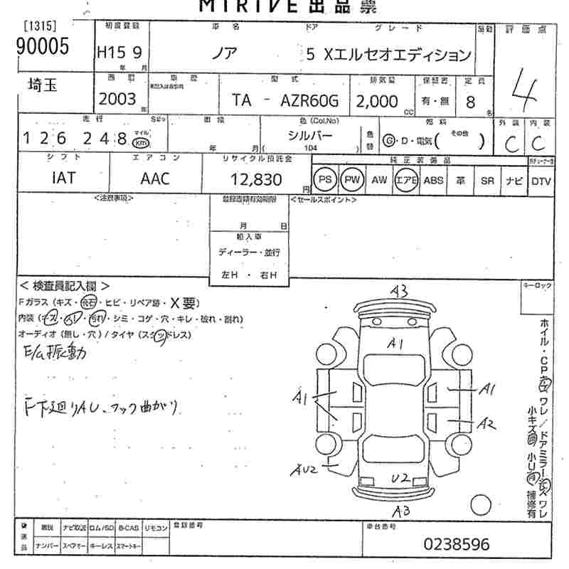 TOYOTA NOAH 2003 г., лот № 90005