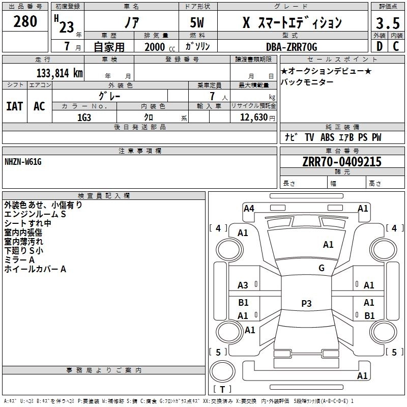 TOYOTA NOAH 2011 г., лот № 280