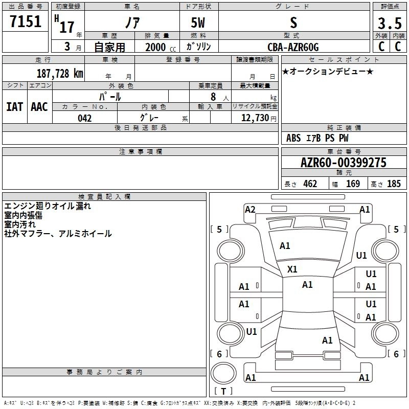 TOYOTA NOAH 2005 г., лот № 7151