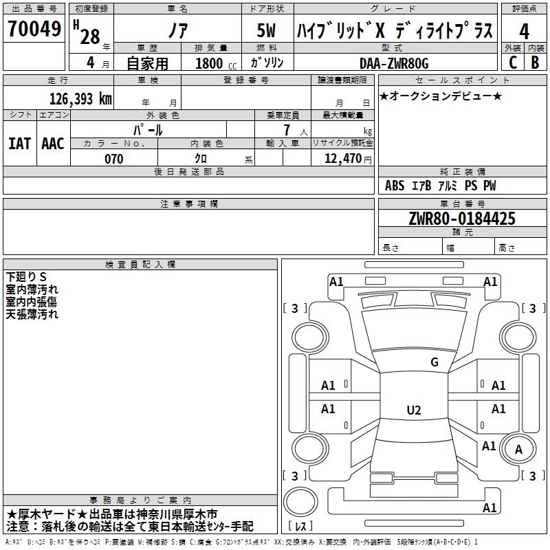 TOYOTA NOAH 2016 г., лот № 70049