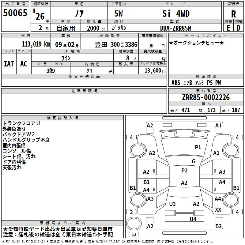 TOYOTA NOAH 2014 г., лот № 50065