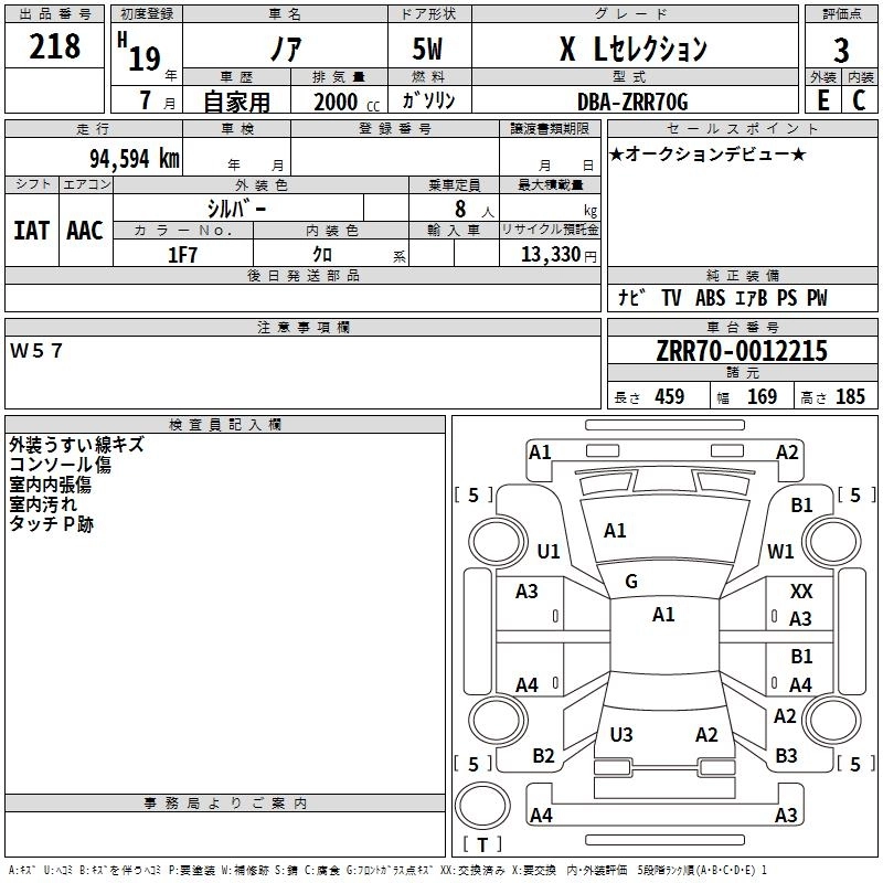TOYOTA NOAH 2007 г., лот № 218