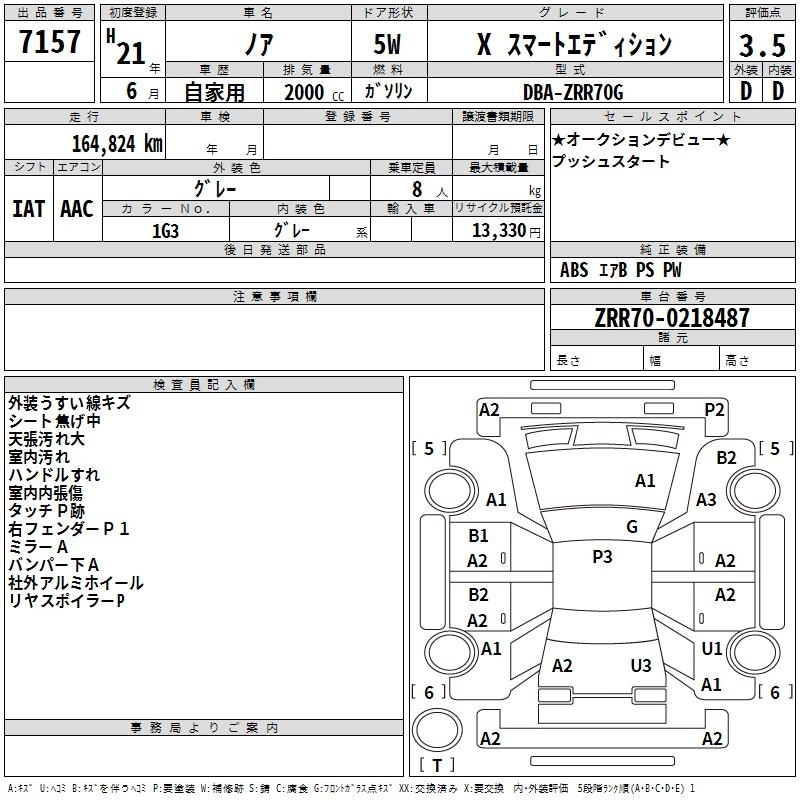 TOYOTA NOAH 2009 г., лот № 7157
