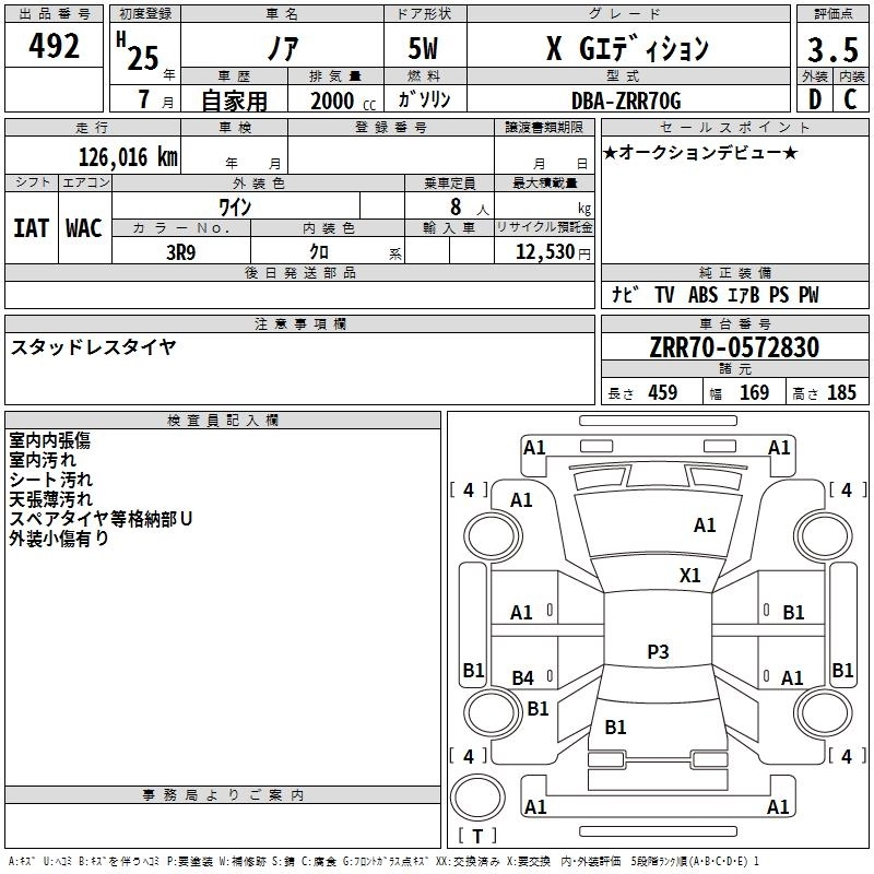 TOYOTA NOAH 2013 г., лот № 492