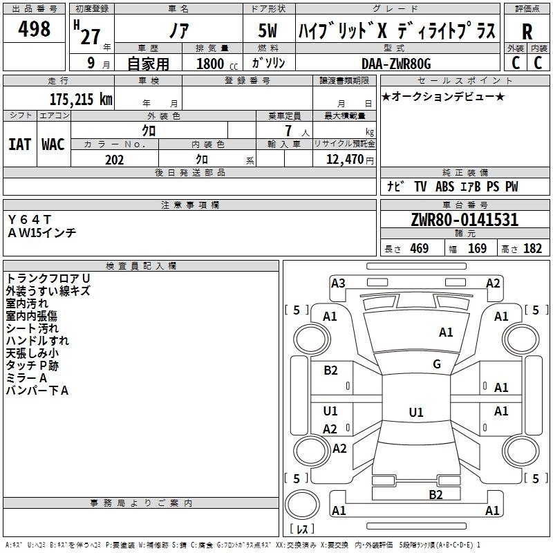 TOYOTA NOAH 2015 г., лот № 498