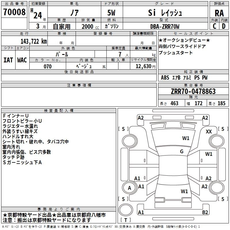 TOYOTA NOAH 2012 г., лот № 70008
