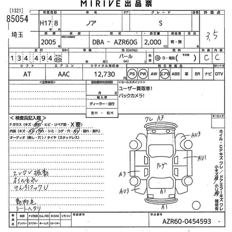 TOYOTA NOAH 2005 г., лот № 85054