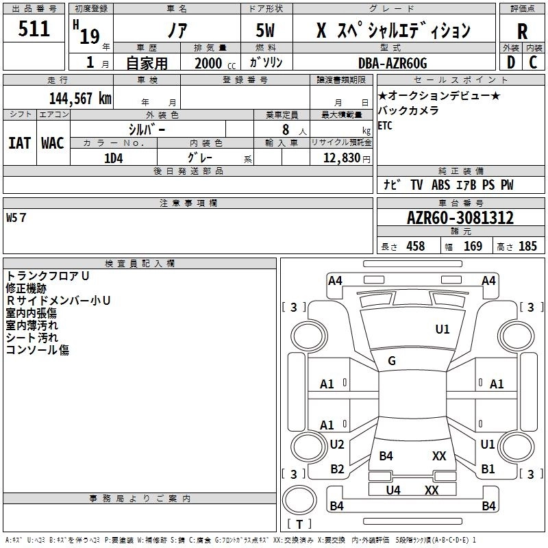 TOYOTA NOAH 2007 г., лот № 511