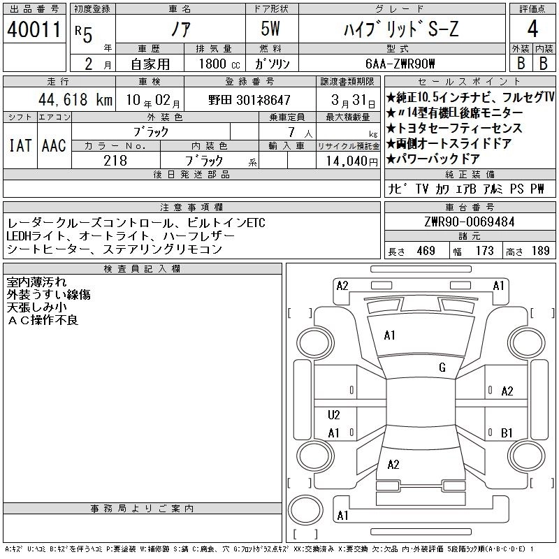 TOYOTA NOAH 2023 г., лот № 40011