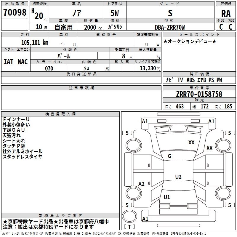 TOYOTA NOAH 2008 г., лот № 70098