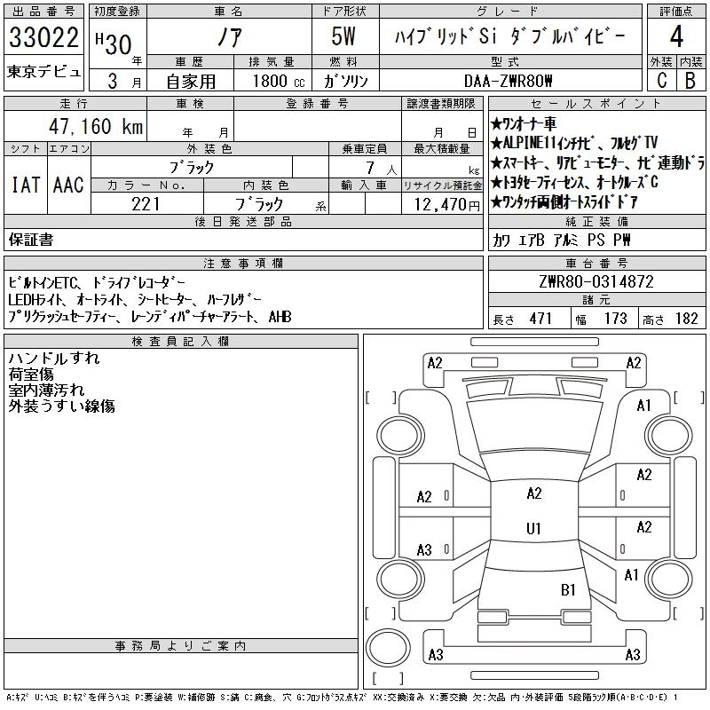 TOYOTA NOAH 2018 г., лот № 33022