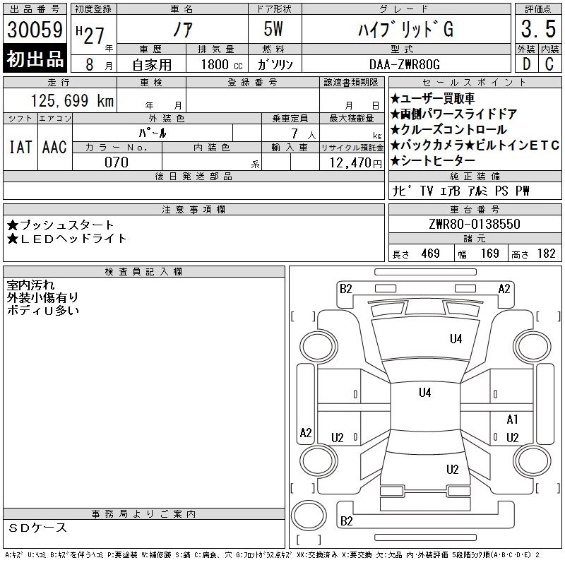 TOYOTA NOAH 2015 г., лот № 30059