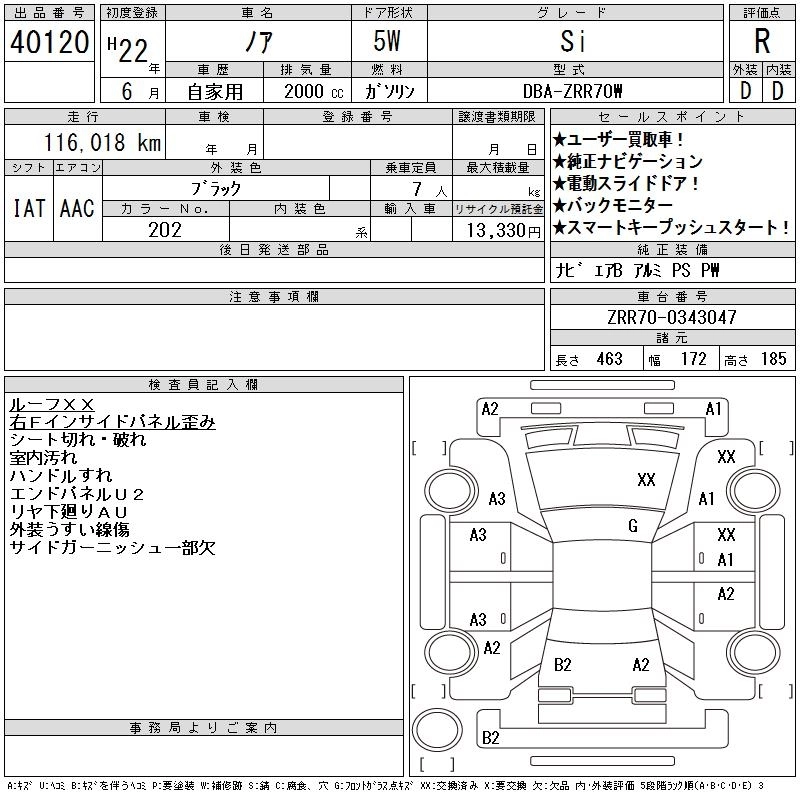 TOYOTA NOAH 2010 г., лот № 40120