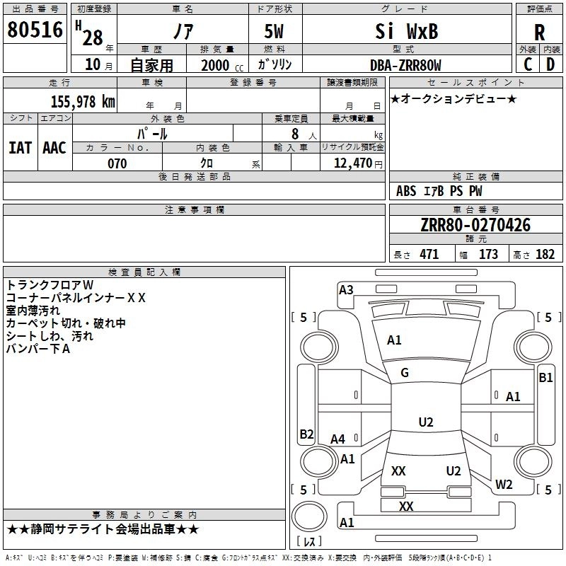TOYOTA NOAH 2016 г., лот № 80516