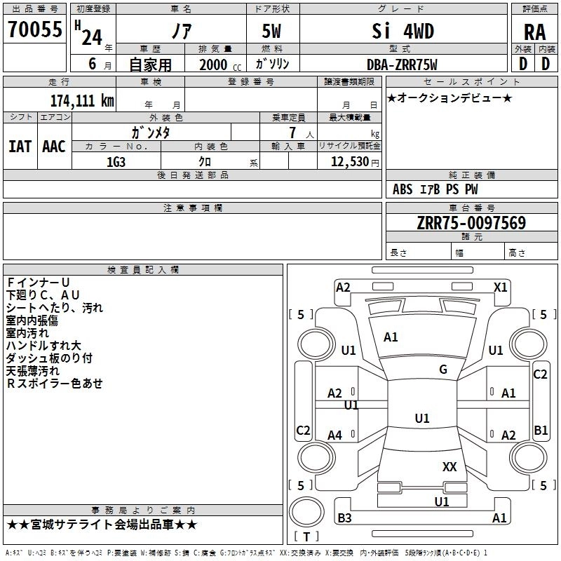 TOYOTA NOAH 2012 г., лот № 70055