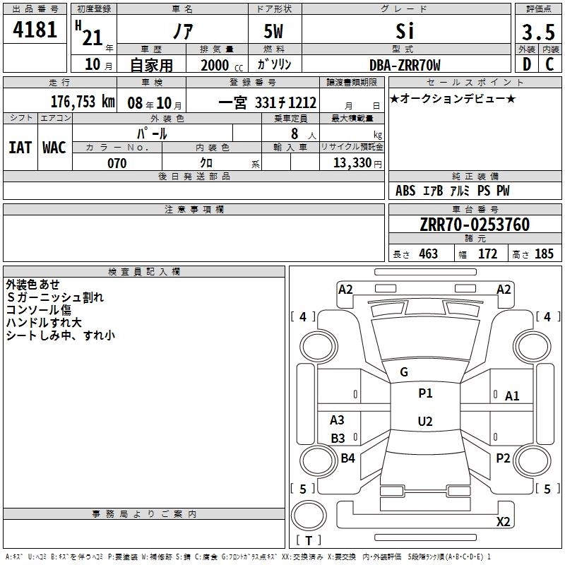 Статус выставлен на аукцион Лот 4181 Аукцион TAA Chubu Дата аукциона 12.03.2026