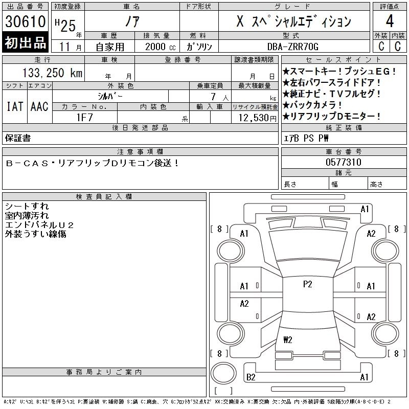 TOYOTA NOAH 2013 г., лот № 30610