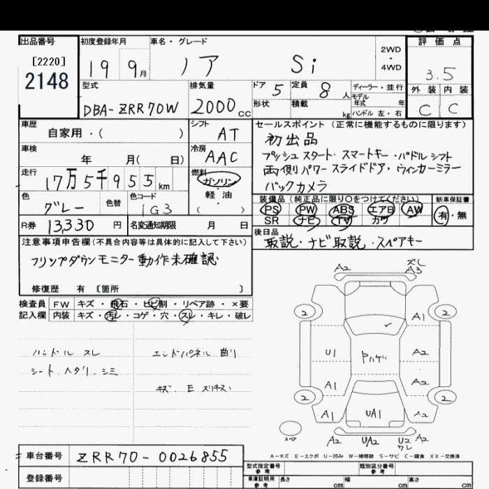 Год выпуска2007 Пробег 176 000 км КузовZRR70W КомплектацияSI 8 PERSON