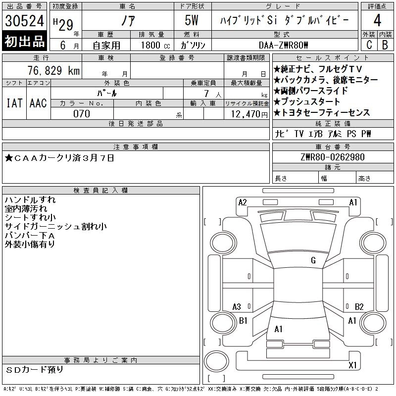 TOYOTA NOAH 2017 г., лот № 30524