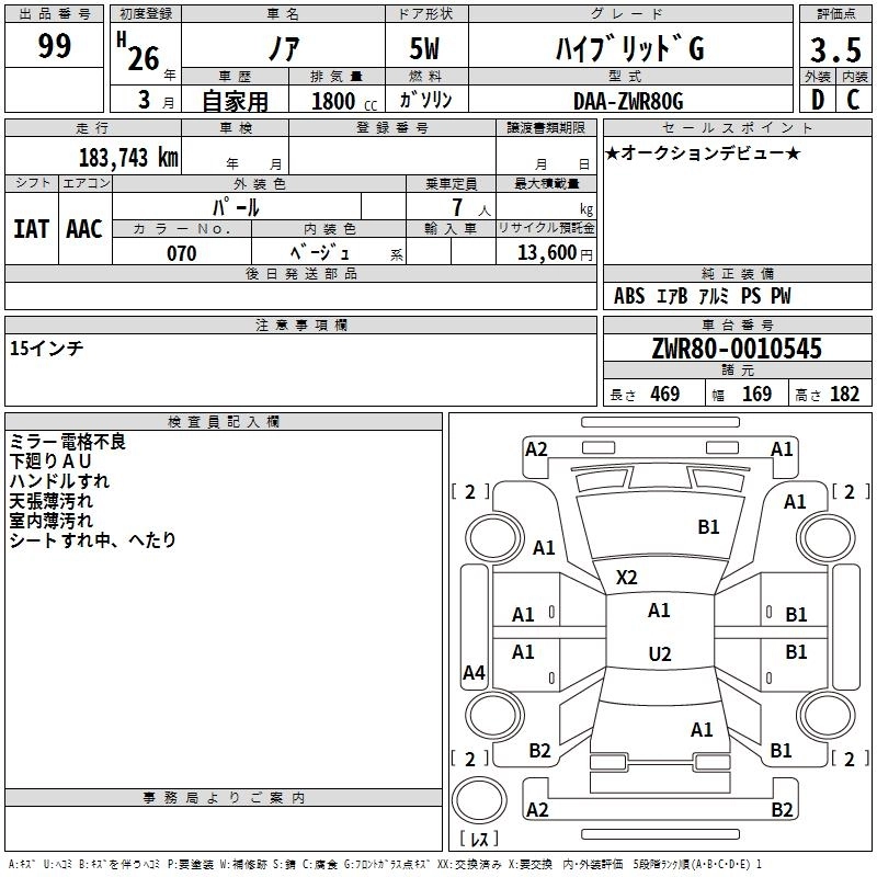 TOYOTA NOAH 2014 г., лот № 99
