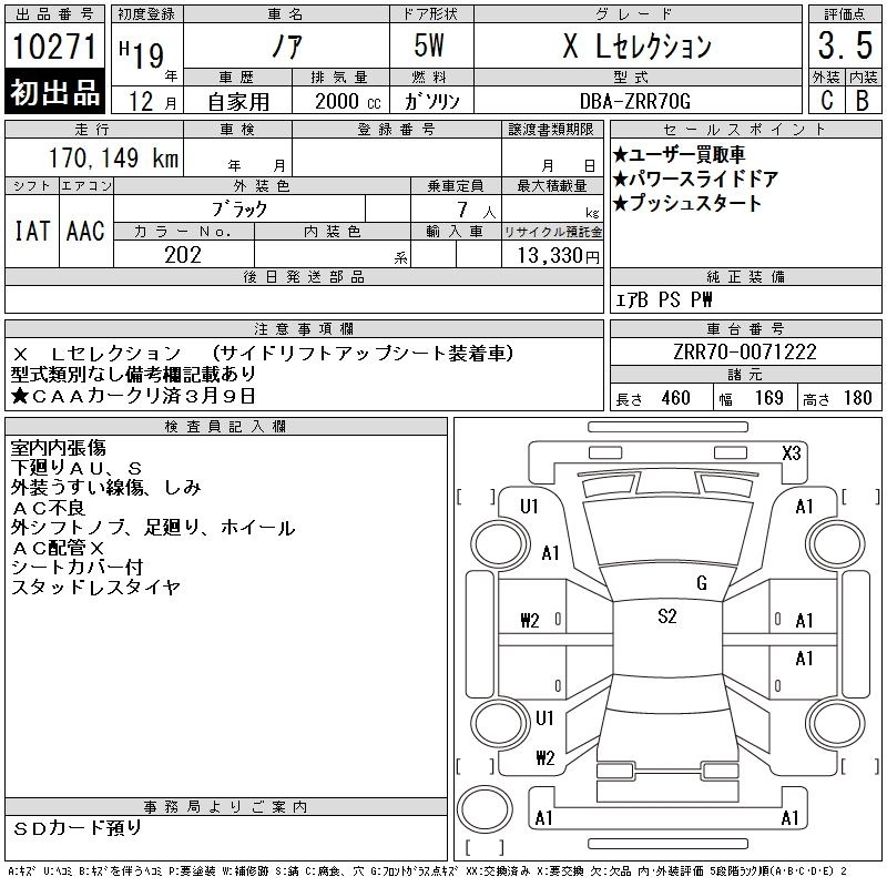 TOYOTA NOAH 2007 г., лот № 10271