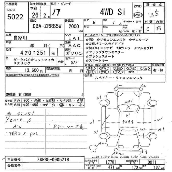 Год выпуска2014 Пробег 40 000 км КузовZRR85W Комплектация4WD Si