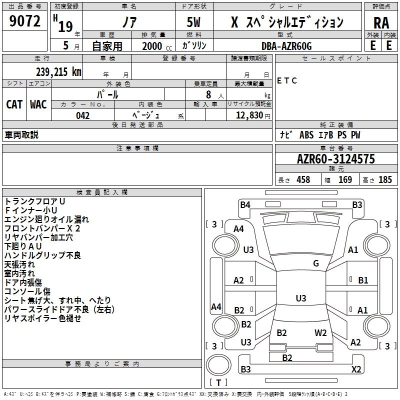 TOYOTA NOAH 2007 г., лот № 9072