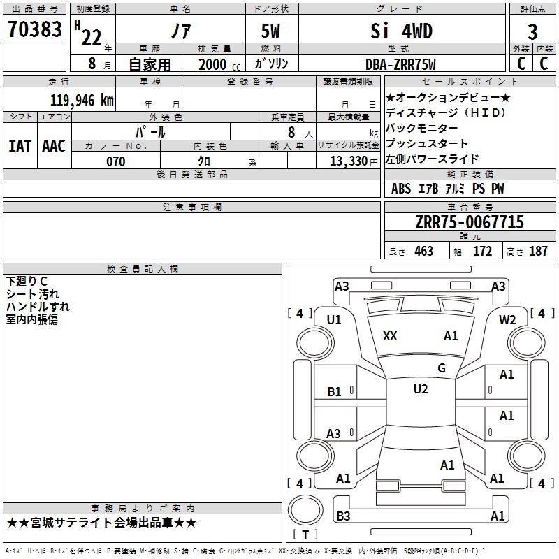 TOYOTA NOAH 2010 г., лот № 70383