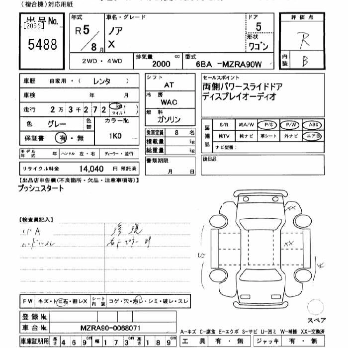 TOYOTA NOAH 2023 г., лот № 5488