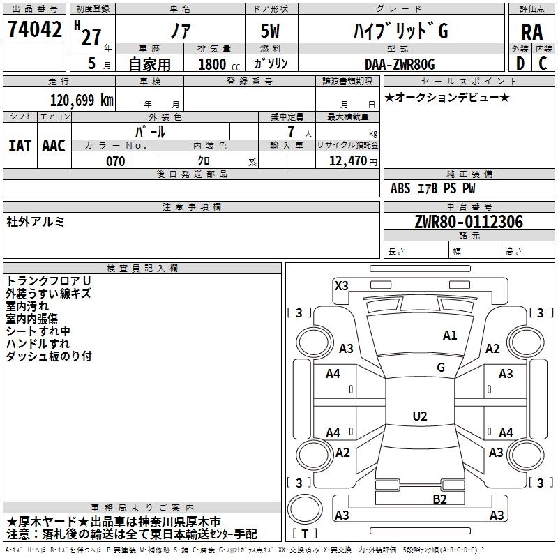 TOYOTA NOAH 2015 г., лот № 74042