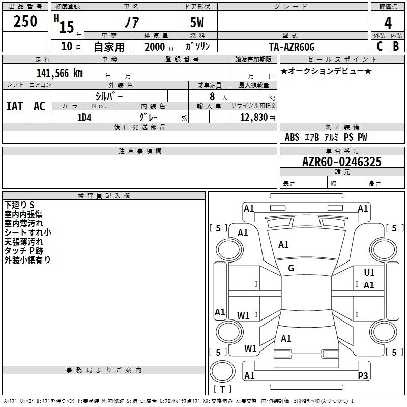 TOYOTA NOAH 2003 г., лот № 250