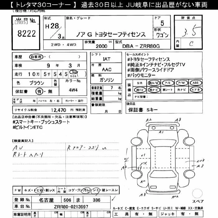 TOYOTA NOAH 2016 г., лот № 8222