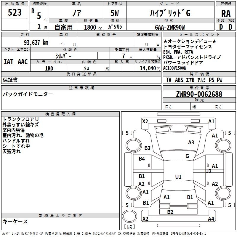 TOYOTA NOAH 2023 г., лот № 523