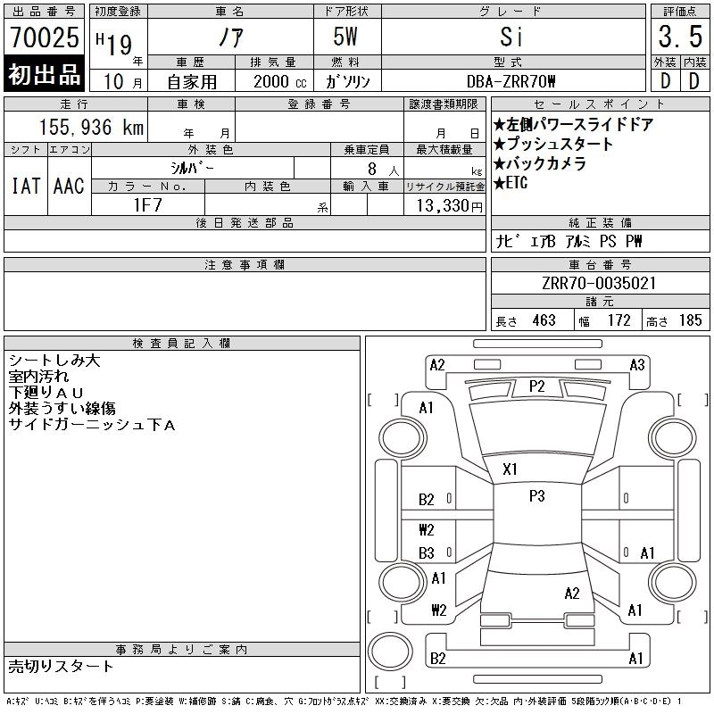 TOYOTA NOAH 2007 г., лот № 70025