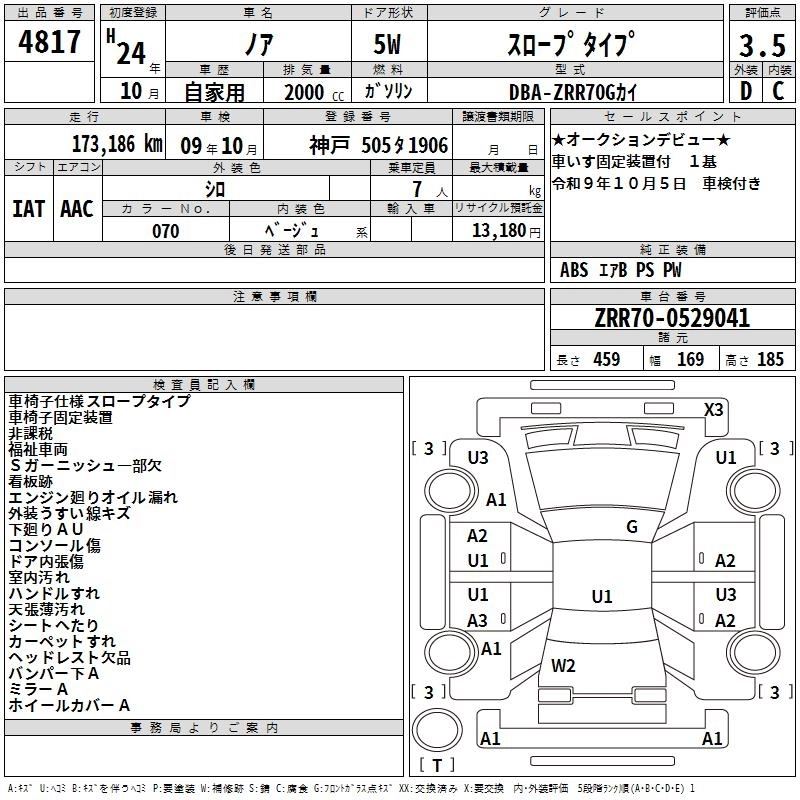 TOYOTA NOAH 2012 г., лот № 4817