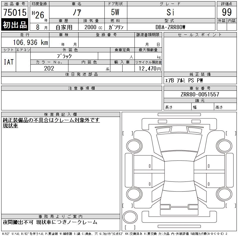 Статус выставлен на аукцион Лот 75015 Аукцион CAA Chubu Дата аукциона 18.03.2026