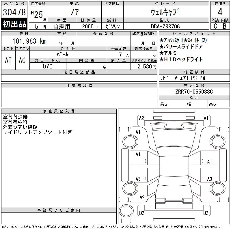 TOYOTA NOAH 2013 г., лот № 30478
