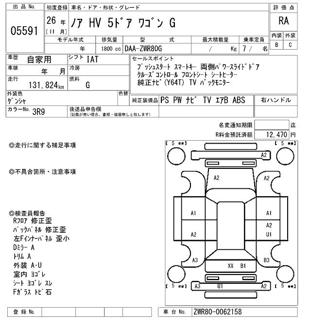 TOYOTA NOAH 2014 г., лот № 5591