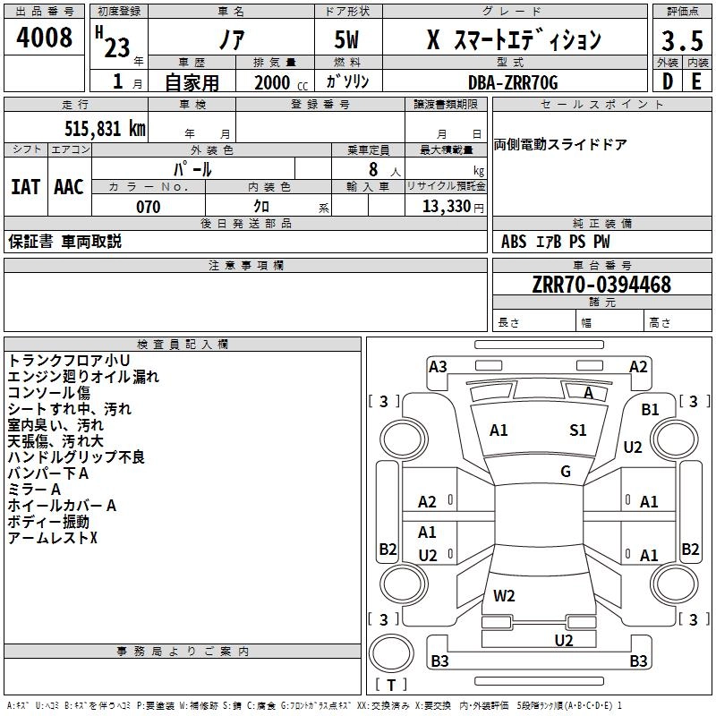 TOYOTA NOAH 2011 г., лот № 4008