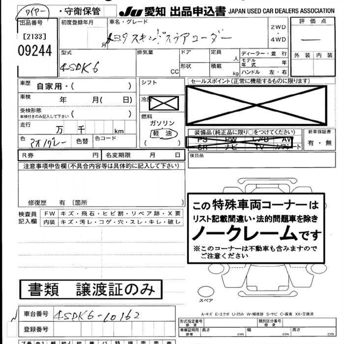 Статус выставлен на аукцион Лот 9244 Аукцион JU Aichi Дата аукциона 06.11.2025