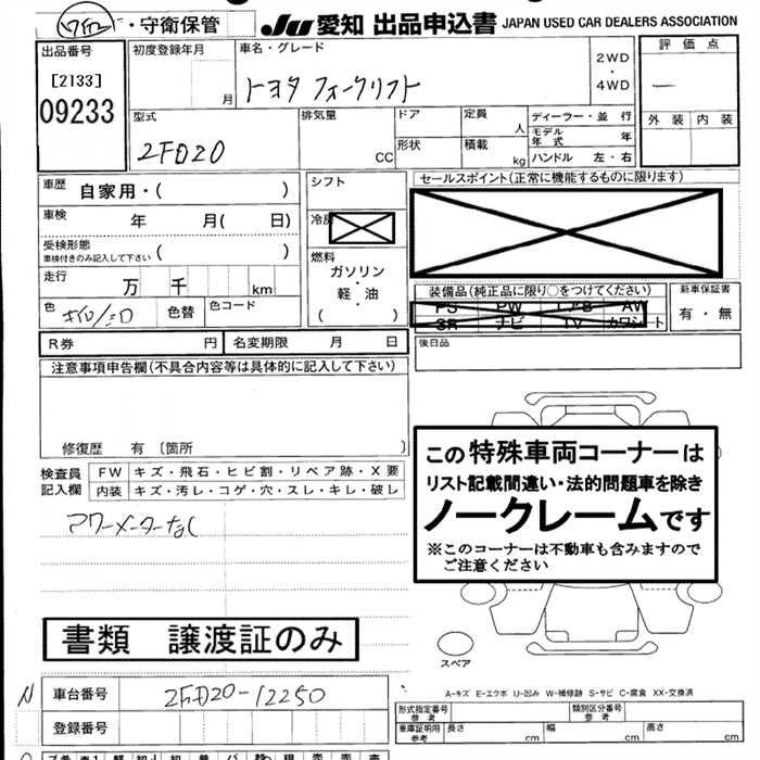 Статус выставлен на аукцион Лот 9233 Аукцион JU Aichi Дата аукциона 06.11.2025