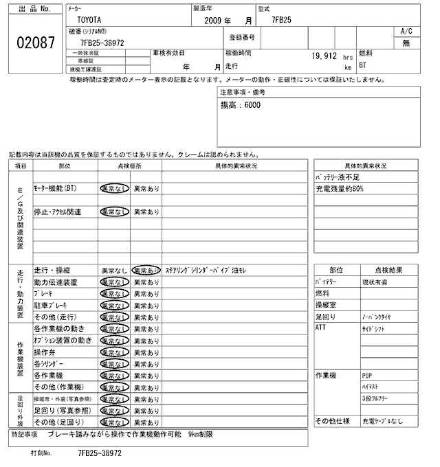 Статус выставлен на аукцион Лот 2087 Аукцион ARAI Kenki Дата аукциона 09.12.2025