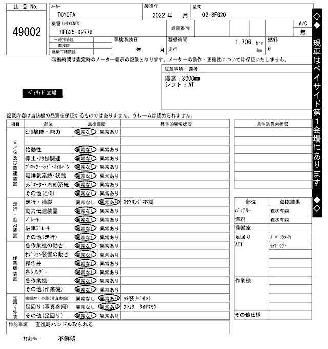 Статус выставлен на аукцион Лот 49002 Аукцион ARAI Kenki Дата аукциона 09.12.2025
