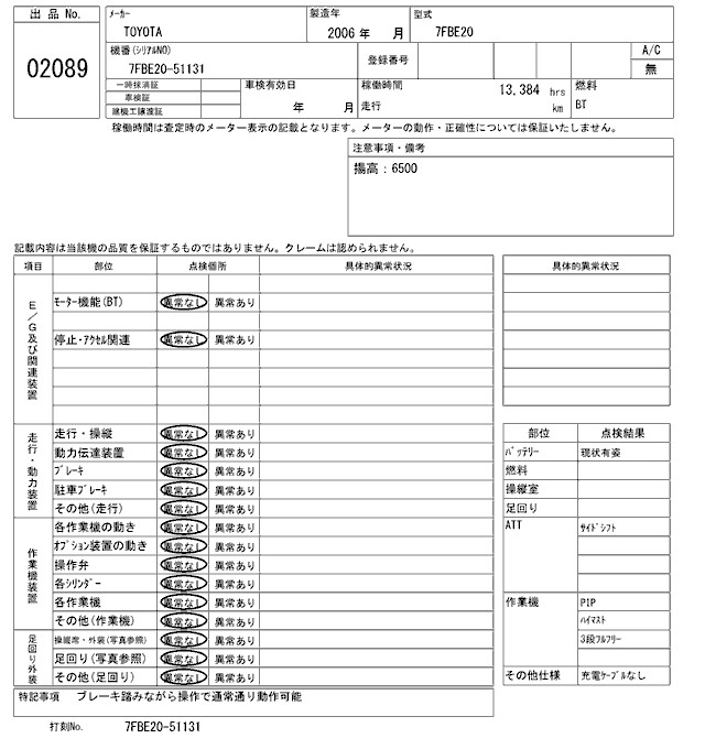 Год выпуска2006 Пробег 13 000 км Кузов7FBE20 Комплектация BATTERY SI YELLOW FORKLIFT