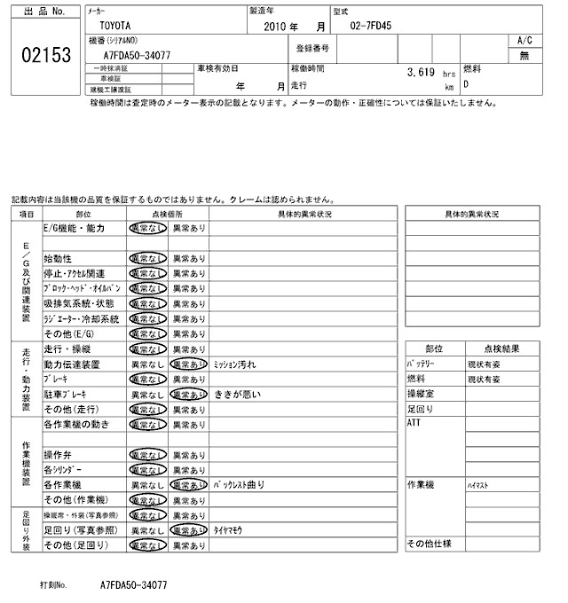 Год выпуска2010 Пробег 4 000 км Кузов02-7FD45 Комплектация FORKLIFT