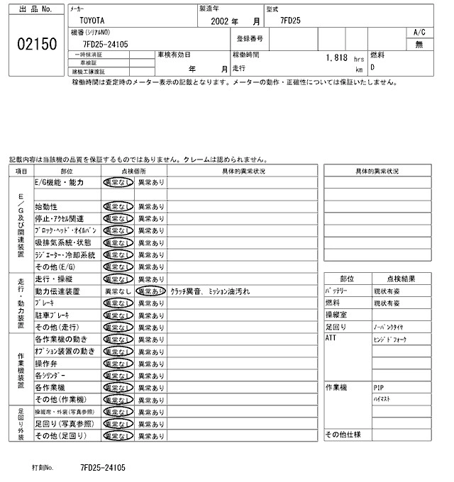 Год выпуска2002 Пробег 2 000 км Кузов7FD25 Комплектация FORKLIFT
