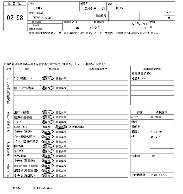 Год выпуска2010 Пробег 5 000 км Кузов7FBE15 Комплектация BATTERY SI YELLOW FORKLIFT