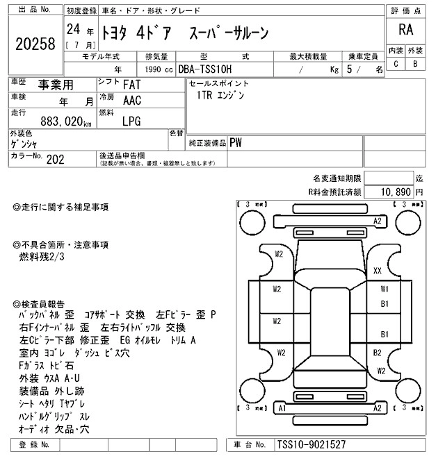 Год выпуска2012 Пробег 883 000 км КузовTSS10H Комплектация SUPER SALOON