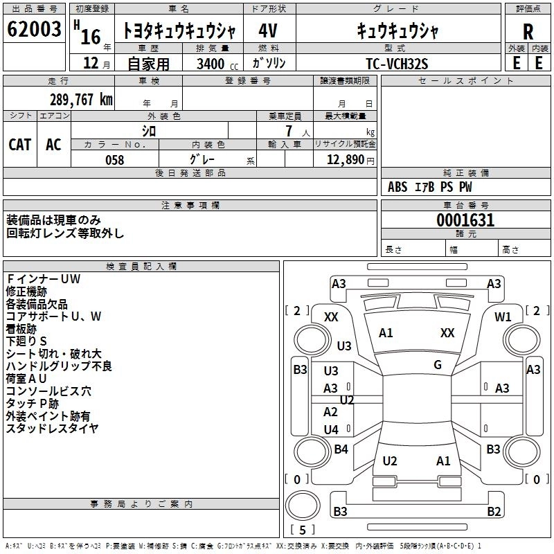 Год выпуска2004 Пробег 290 000 км КузовVCH32S Комплектация AMBULANCE CAR